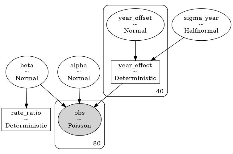 log_lambda = alpha + beta * group_pois + year_effect[year_idx_pois]